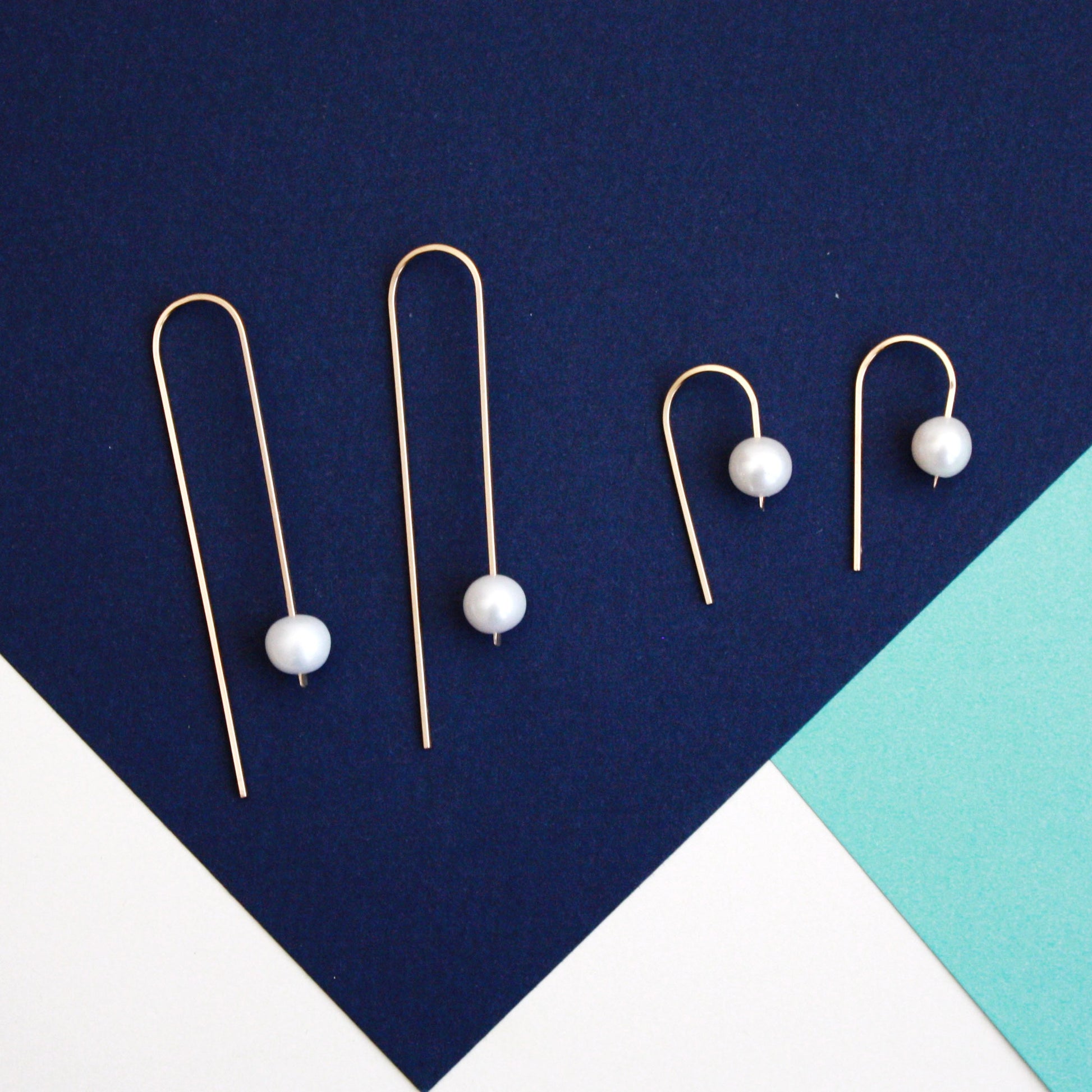 Long Arc Threader Earrings - Large Pearl