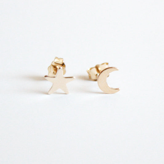 Moon & Star Stud Earrings