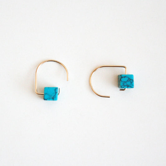 Short Hook Stud Earrings - Gemstones