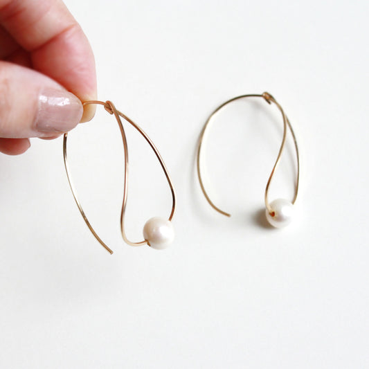 Teardrop Hoop Earrings - Pearl