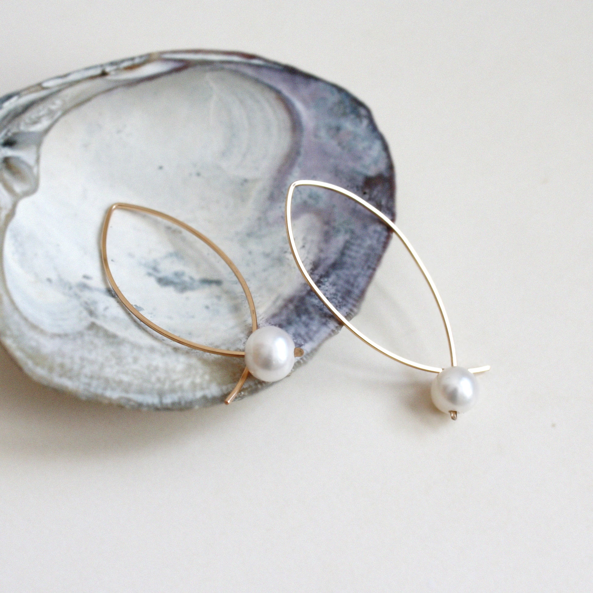 Elegant and minimal, these pearl arc threader earrings are perfect for both everyday wear and special occasions such as weddings, parties, or work events. They are made out of hypoallergenic 14k gold filled metal that is safe for sensitive ears.