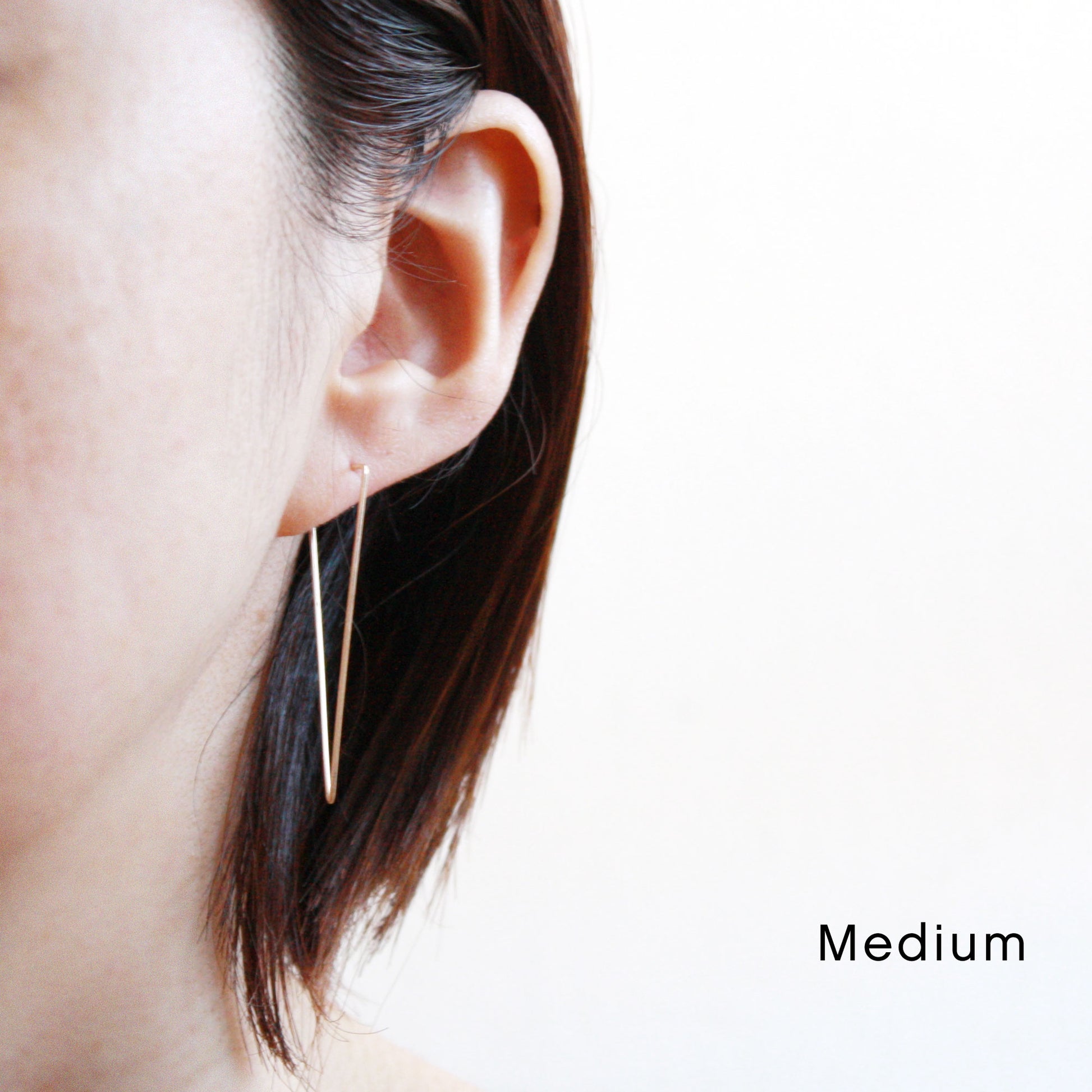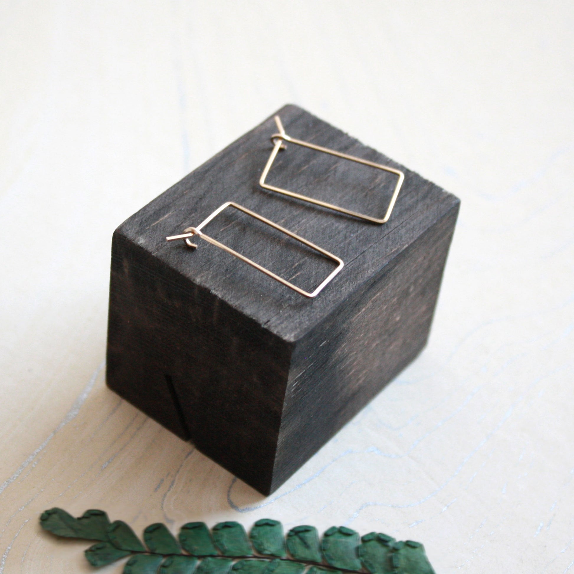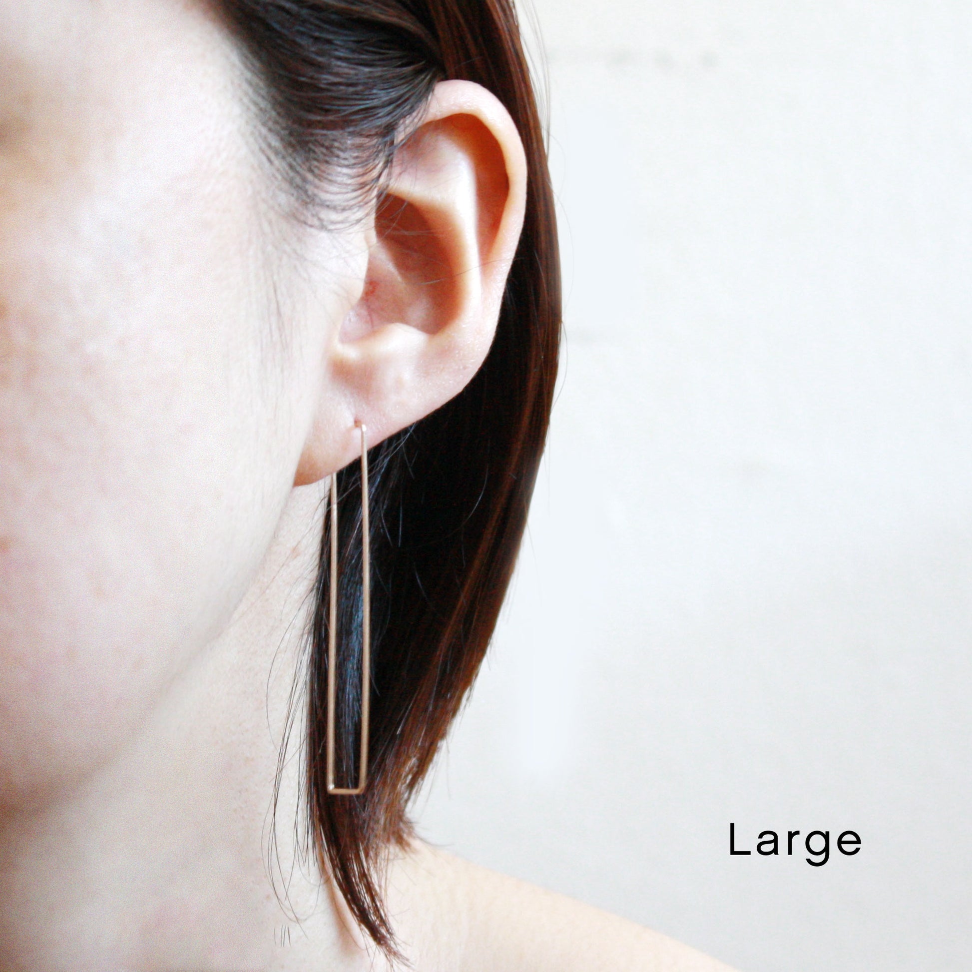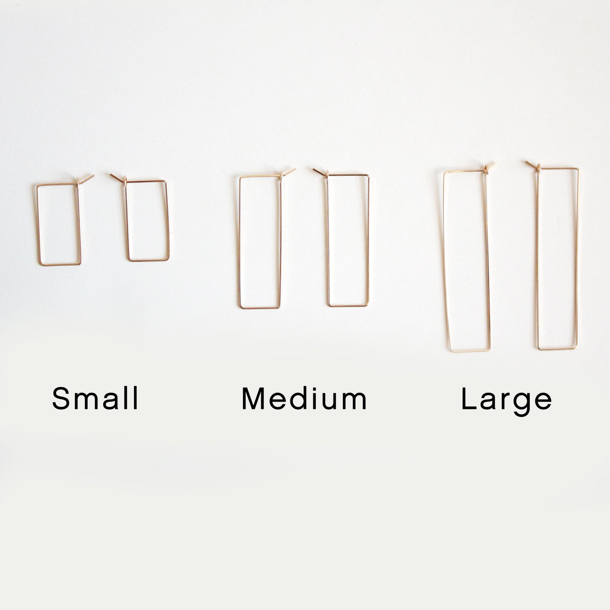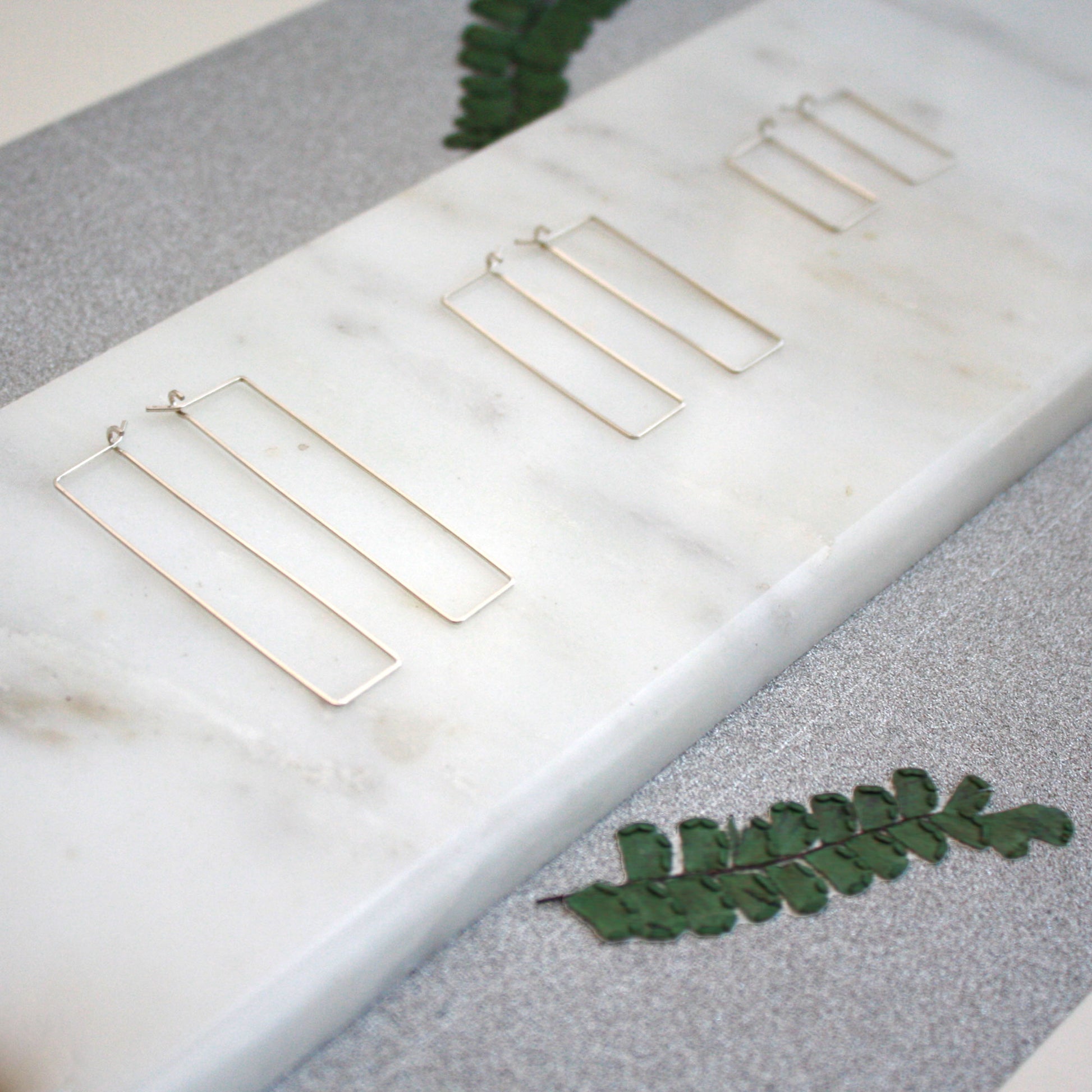 A pair of sterling silver rectangle hoop earrings in small, medium, and large sizes. The simple design fits any outfit and any occasion. These earrings are so light that you don't feel like you are wearing anything! All handmade in NY. Please select your size from the options.
